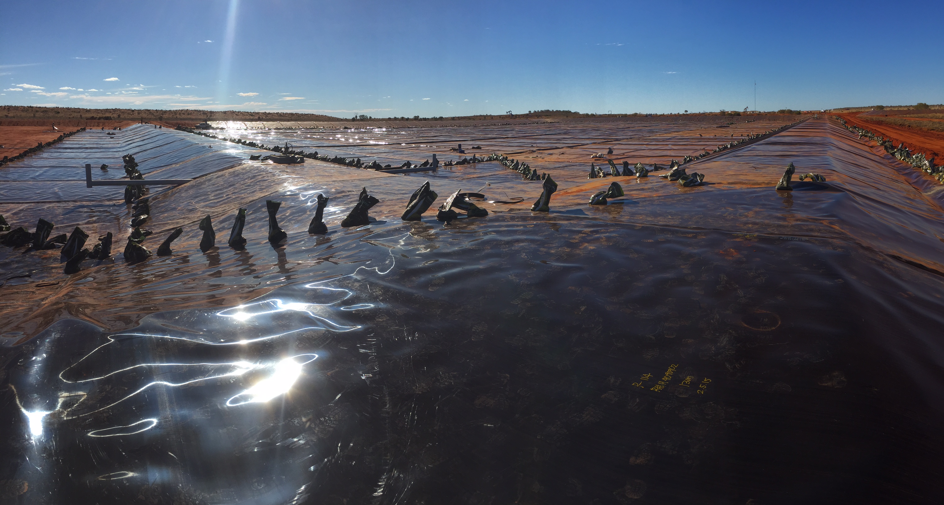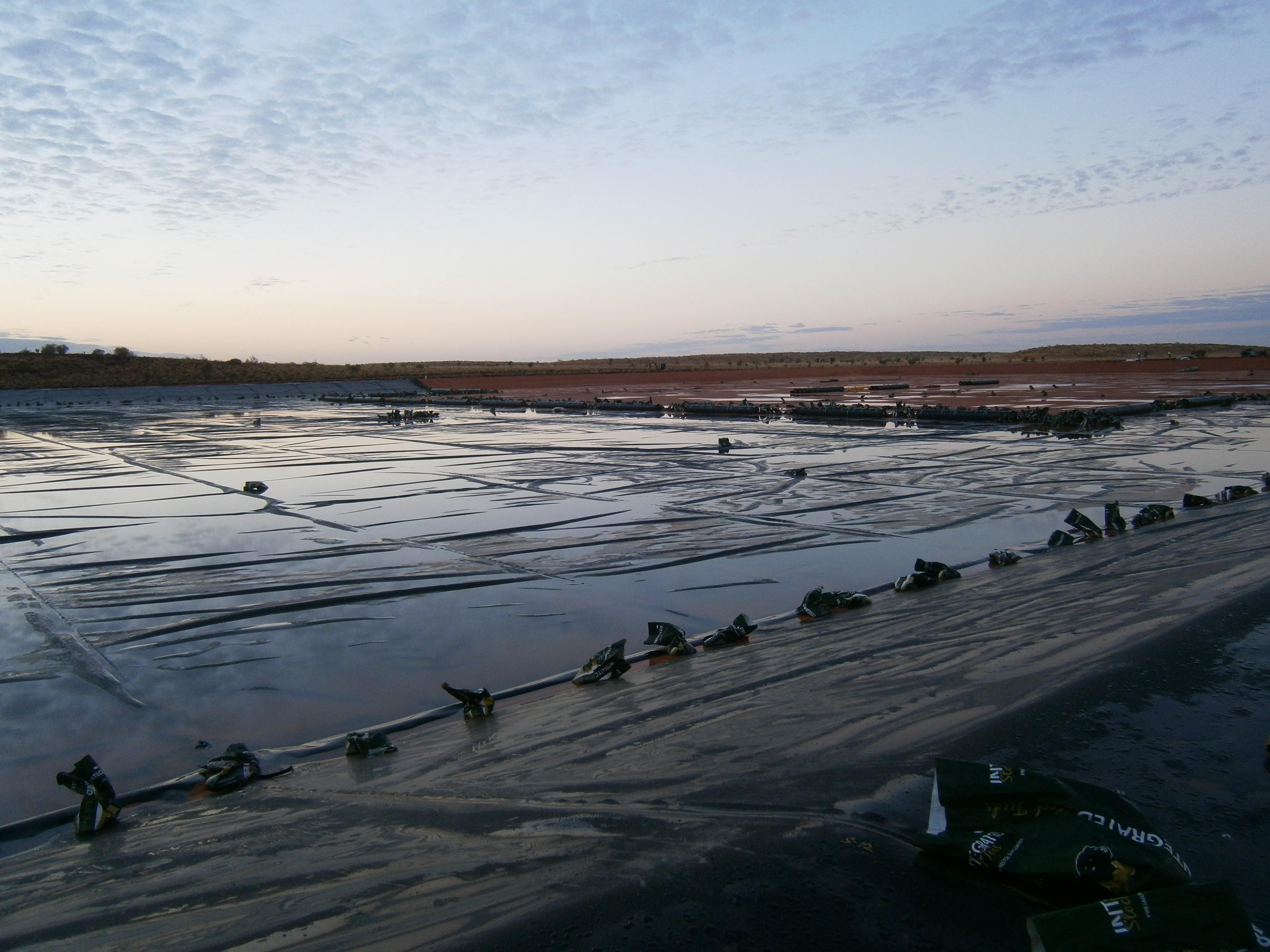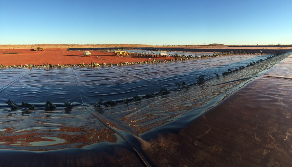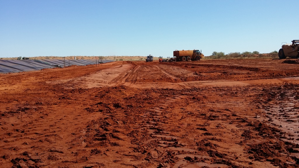 Construction of over 80,000 m2 HDPE earth embankment oil production water evaporation ponds at the remote Cook oil extraction facility in Queensland.