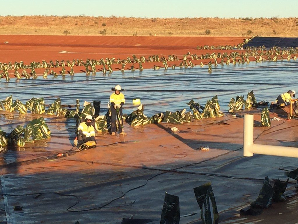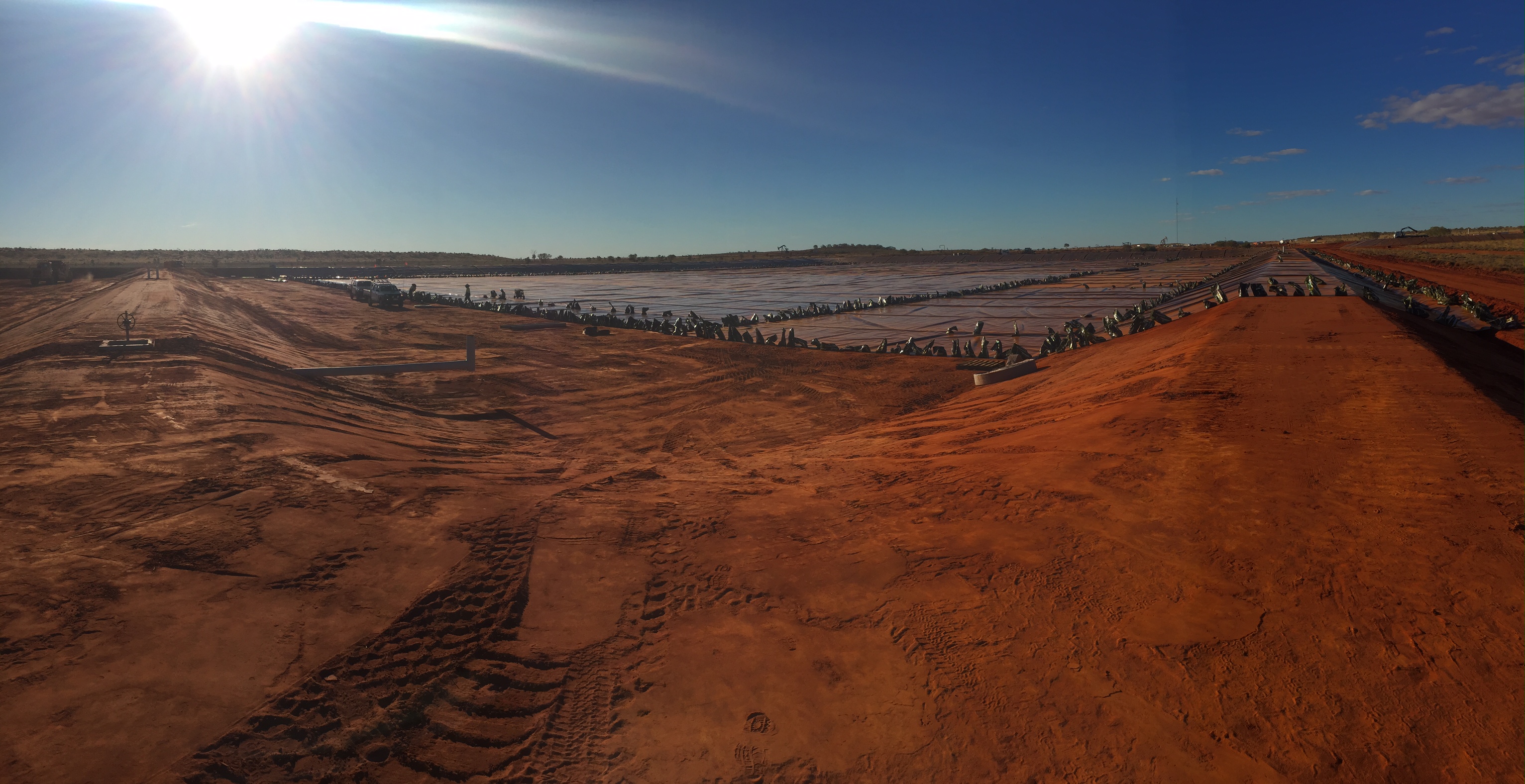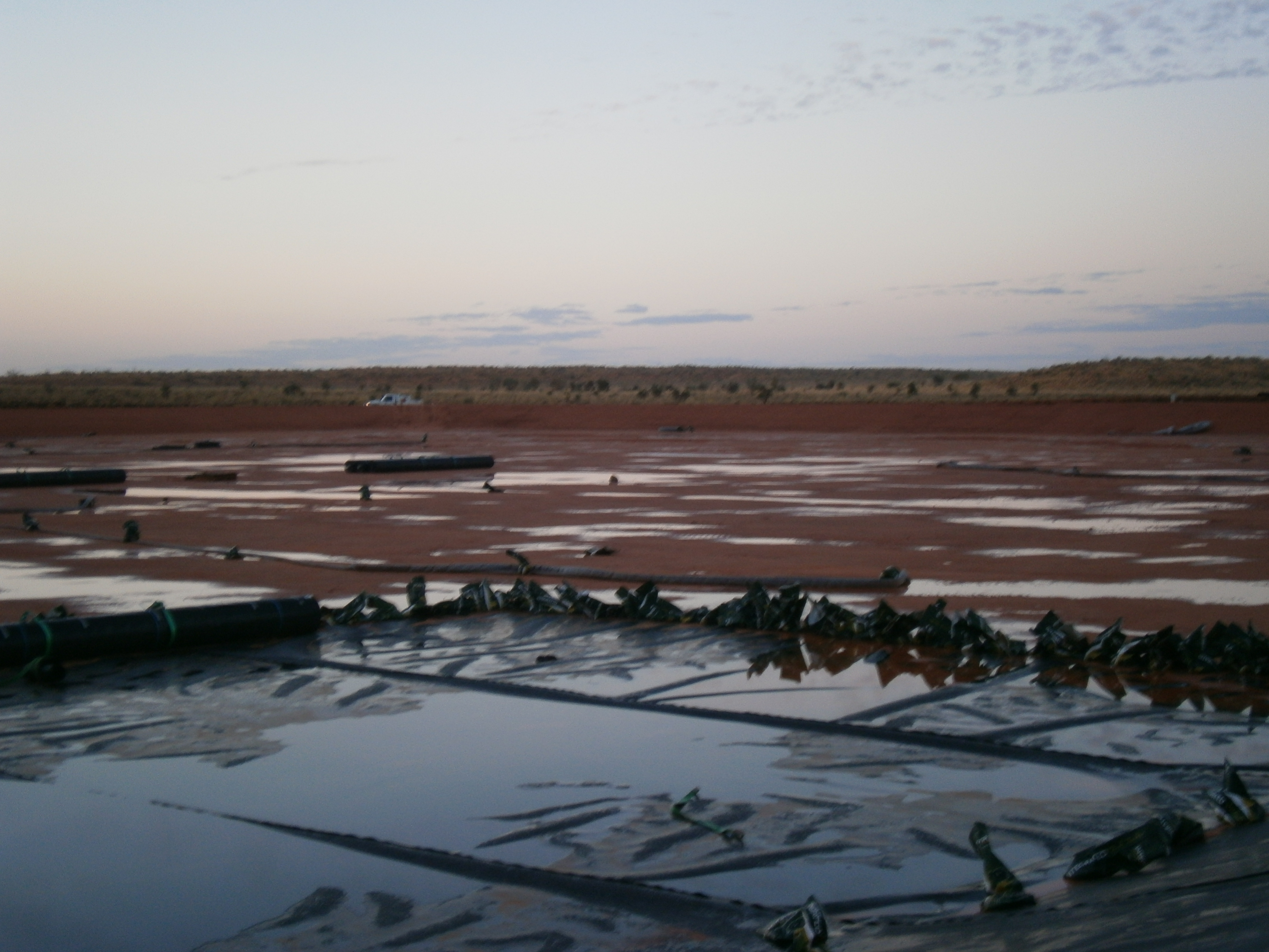 Construction of over 80,000 m2 HDPE earth embankment oil production water evaporation ponds at the remote Cook oil extraction facility in Queensland.