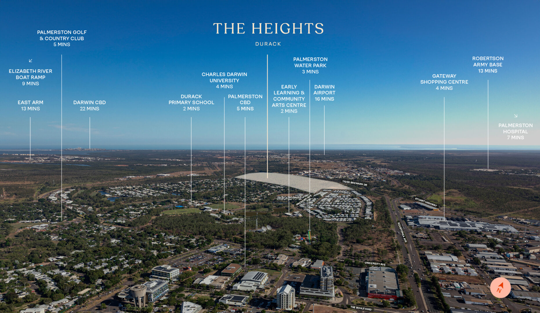 The Heights @ Durack is a transformative master-planned community spanning over 50 hectares in the heart of Palmerston, just 20 minutes from Darwin CBD. Designed to accommodate more than 400 families across seven stages, the development offers a diverse range of lot sizes—from low-maintenance 300m² blocks to spacious 1000m² premium homesites. This diversity caters to various demographics, including first-time buyers, growing families, and retirees.